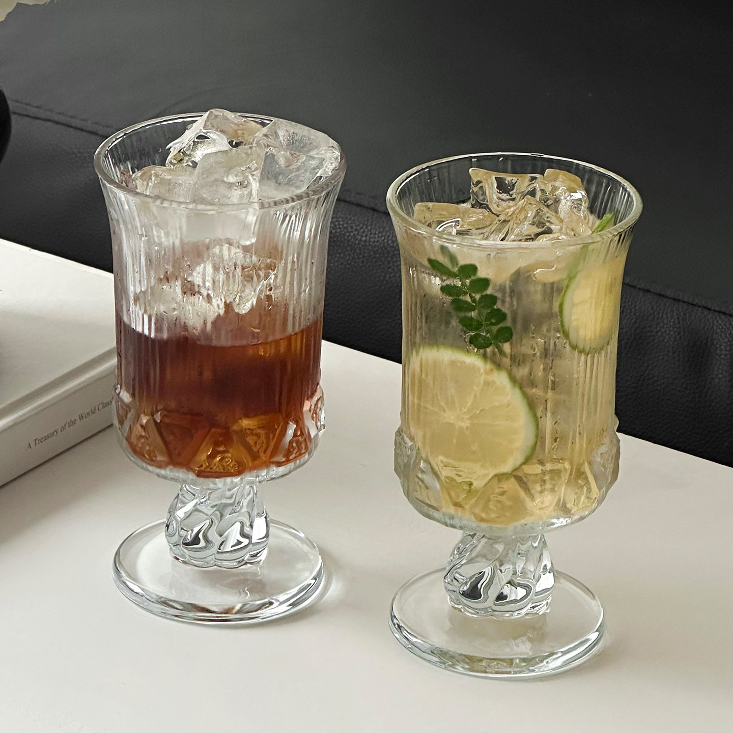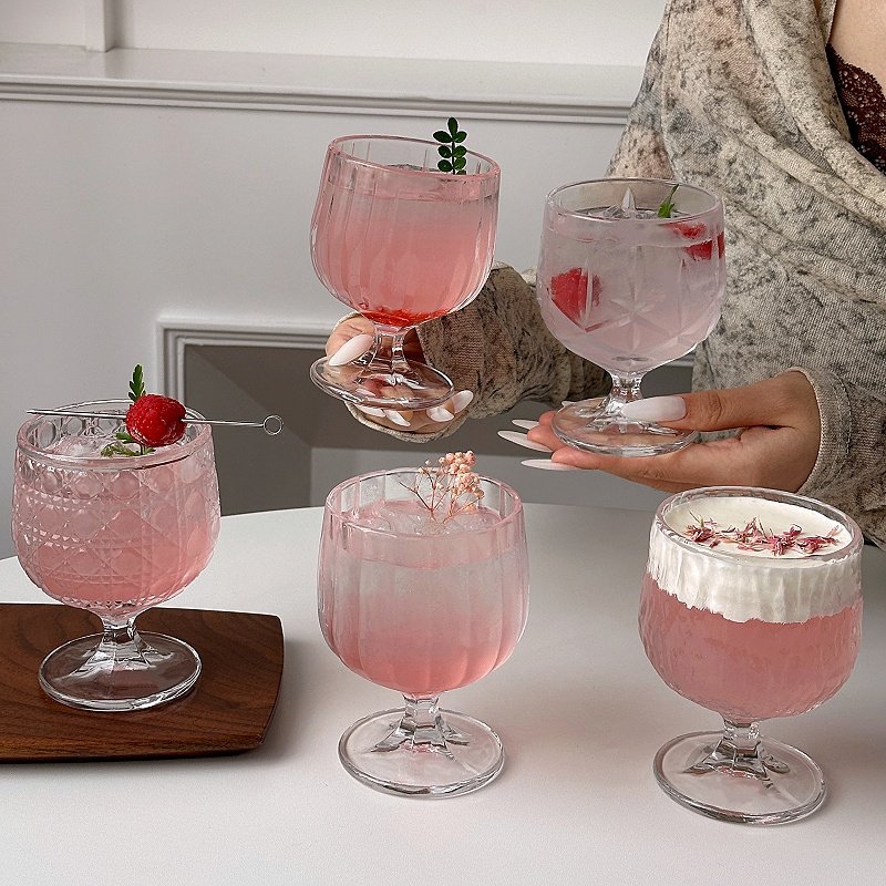 (特)北欧宫廷风冰川高脚杯轻奢高级感红酒杯小众咖啡杯果汁杯饮品杯子
