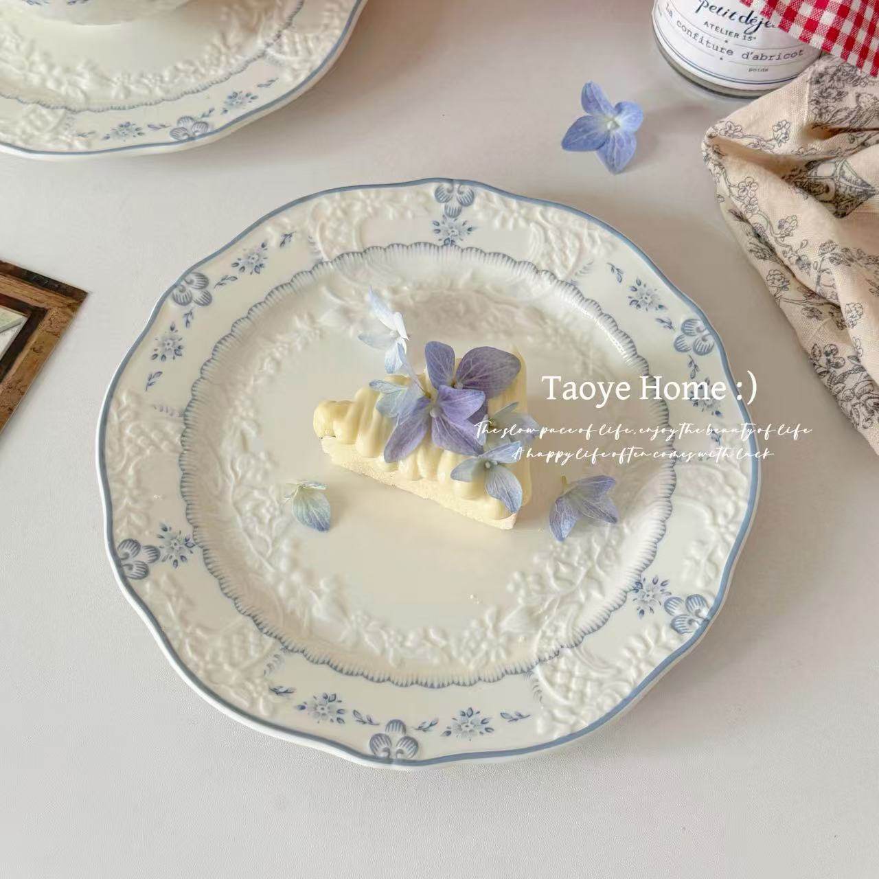 (特)法式高颜值花开半夏浮雕陶瓷碗家用菜盘子中古早餐西餐沙拉甜品盘