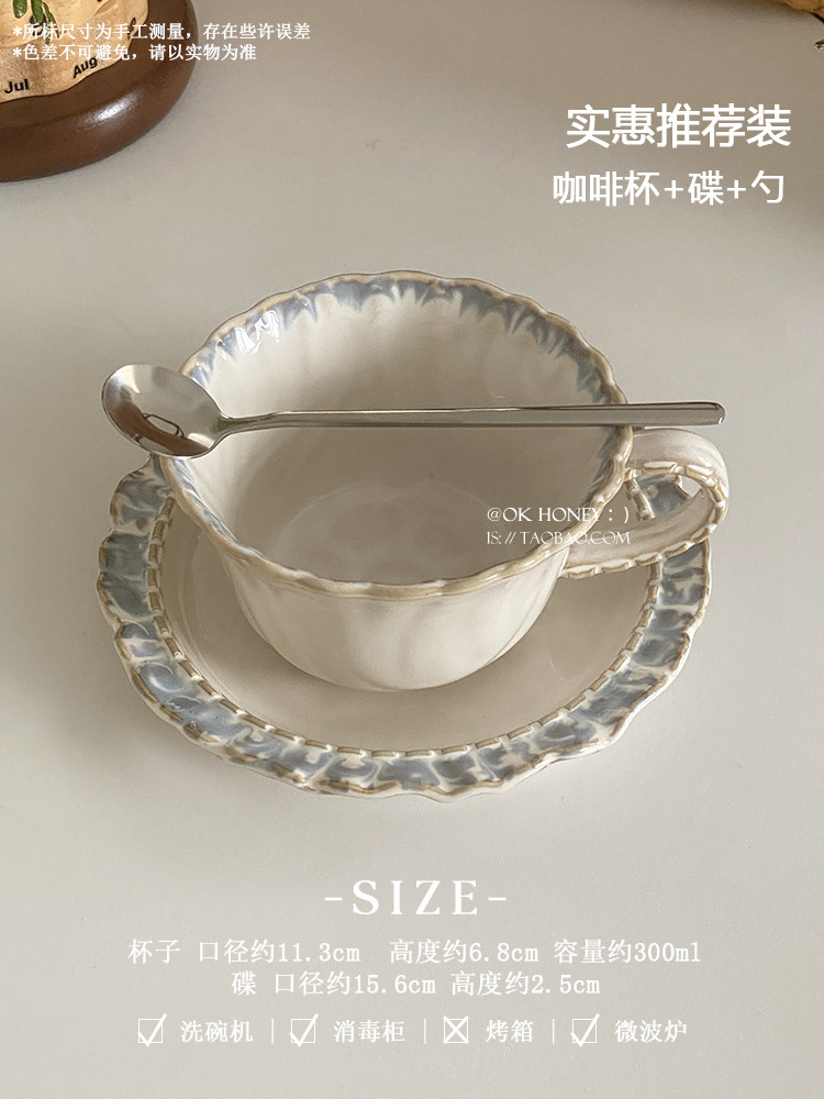 (特)复古轻奢女生陶瓷杯高颜值咖啡杯碟办公室水杯家用马克杯子伴手礼