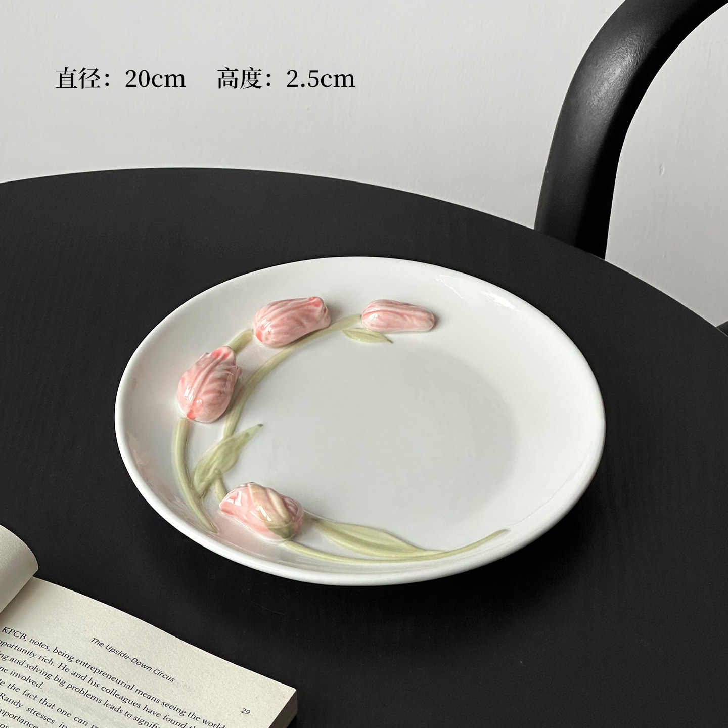 (特)立体浮雕郁金香陶瓷甜品盘ins高颜值法式复古点心蛋糕盘创意餐具