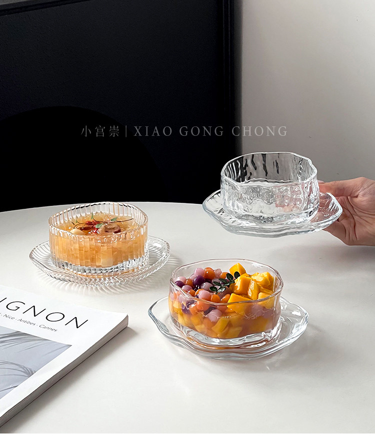 (特)ins风不规则甜品碗套装高颜值云朵玻璃碗碟