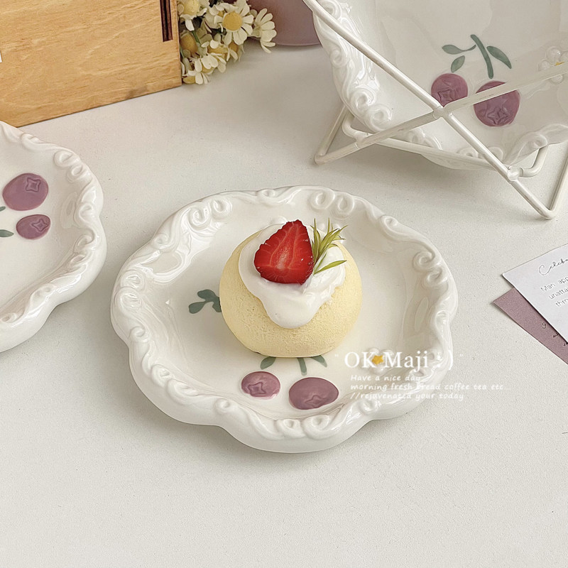 (特)可爱盘子家用高颜值釉下彩餐盘陶瓷碟子点心盘蛋糕碟早餐甜品盘