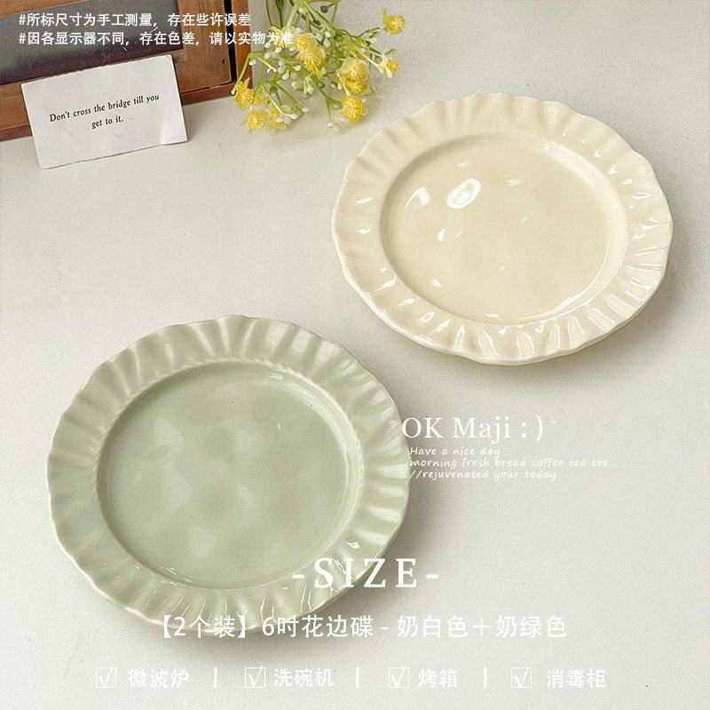 (特)ins风6寸小盘子高级感甜点碟子餐具陶瓷餐盘可爱甜品盘精致蛋糕碟