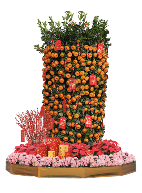 (特)朱砂桔组合2 植物朱砂桔80盆一品红 西洋杜鹃装饰材料 kt板含铁艺支撑炮仗银柳