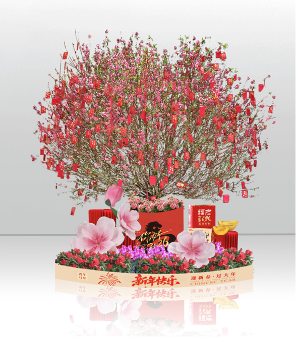 (特)桃花组合2 植物 3m桃花玫瑰海棠 黄金万两 一品红 装饰材料 kt板卡纸盒子纸艺台子纸艺