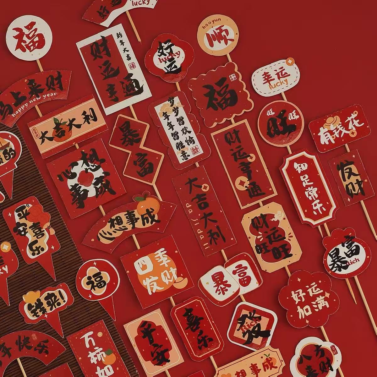 (特)中式2026新年快乐蛋糕装饰插牌马年中国风元旦跨年祝福语烘焙插件