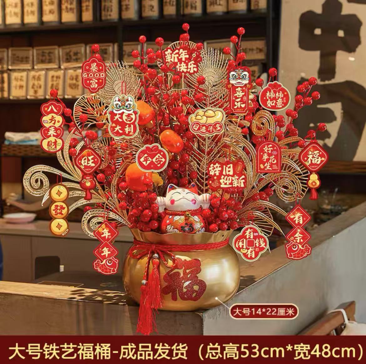 (特)2026新年装饰品福桶抱抱桶过年马年春节氛围场景布置插花桌面摆件