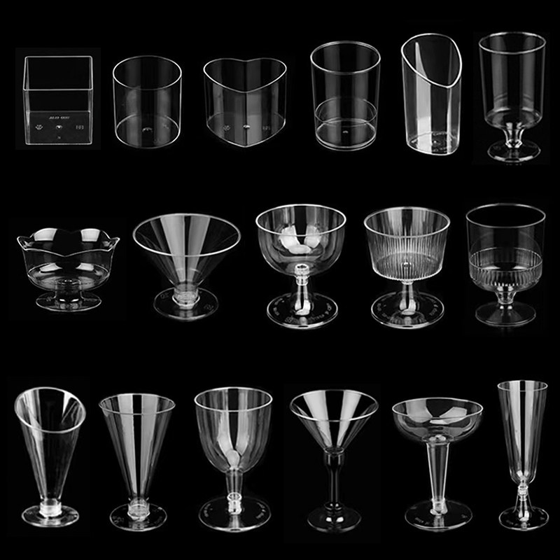 (特)高脚慕斯杯甜品台红酒杯香槟杯航空杯塑料一次性透明杯烘焙