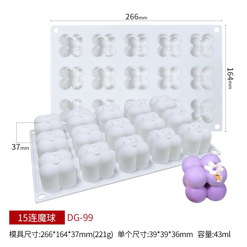 (特)捏捏乐15连二阶魔球慕斯蛋糕硅胶模具法式甜点模魔方方块DIY烘焙