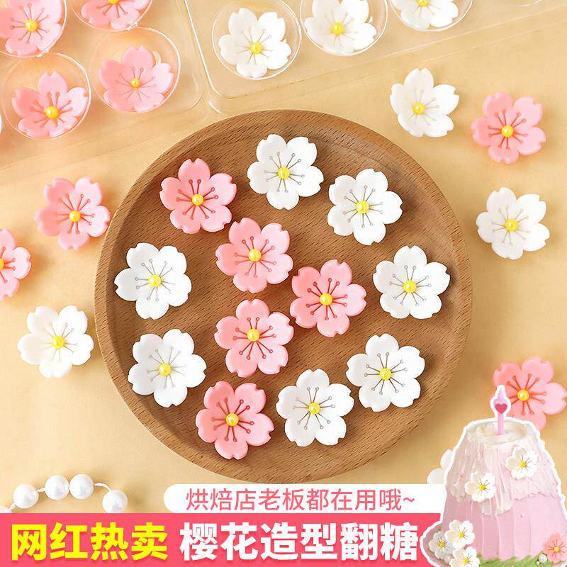 (特)巧克力樱花蛋糕装饰摆饰翻糖小白花粉色花朵提拉米苏(代可可脂)