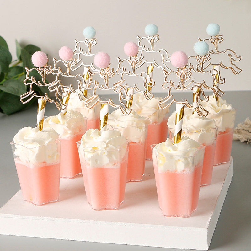 (特)旋转木马蛋糕插件宝宝生日宴布置甜品台装饰小金马慕斯杯装饰插牌