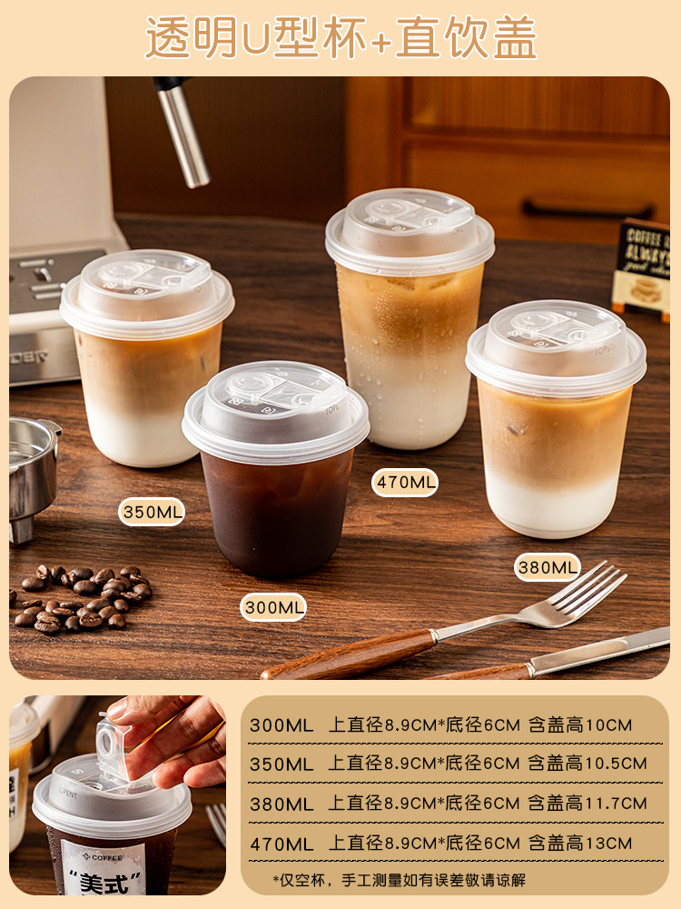 (特)一次性咖啡杯奶茶杯子带盖塑料透明饮料杯家用加厚密封外出携带