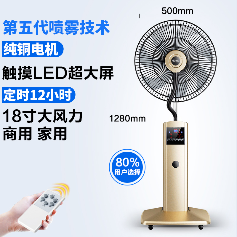 (特)林边喷雾电风扇落地扇家用大风力静音加湿强力降温工业水冷雾化扇