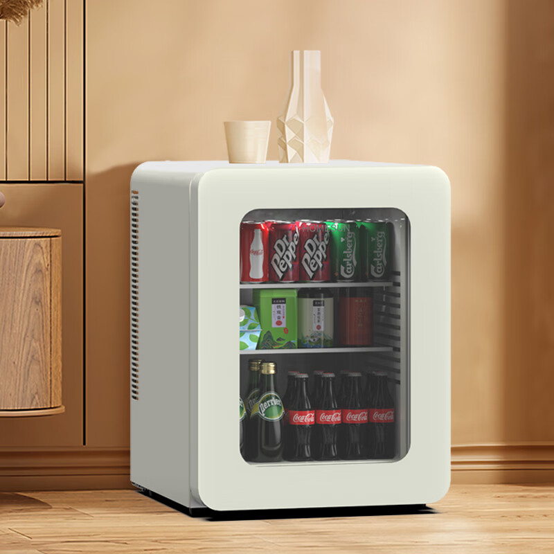 (特)奥达信【新品】复古小冰箱静音家用客厅桌面冷藏冷冻保鲜美妆冰箱迷你茶叶保鲜柜冰吧学生宿舍床头冰箱 BCG41E-奶油白玻璃门(静音款)