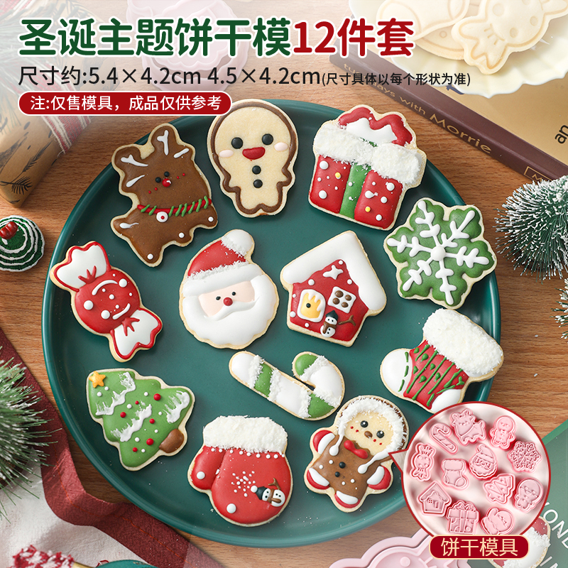 (特)圣诞饼干模具姜饼人diy材料糖霜曲奇翻糖烘焙圣诞节老人树屋家用