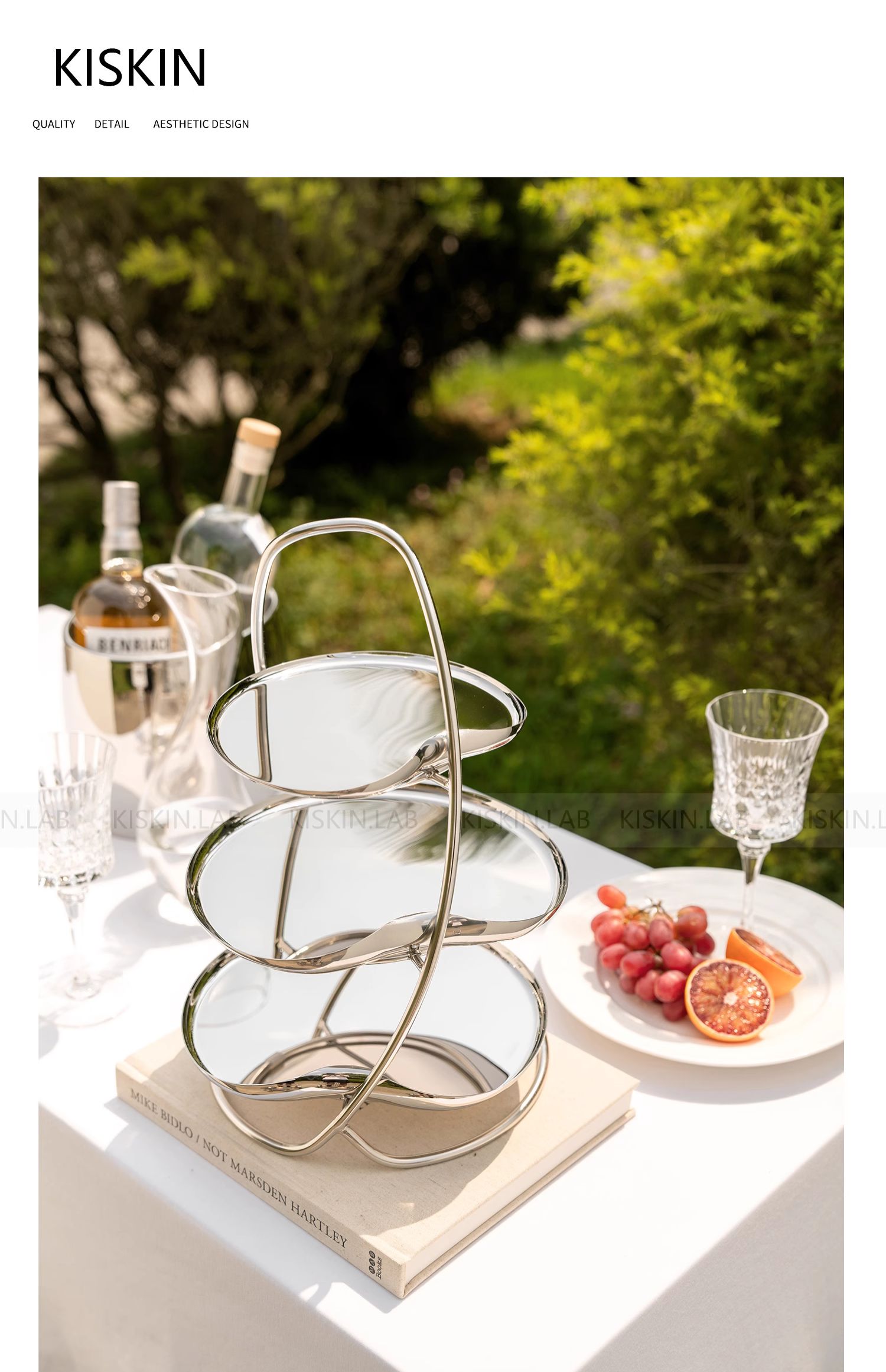 (特)欧式不锈钢下午茶点心架轻奢三层甜品架蛋糕水果食品展示架摆件