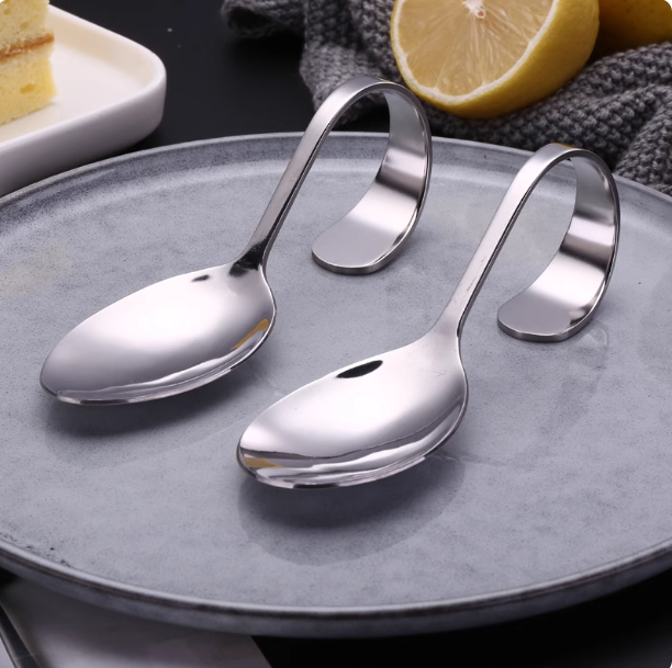 (特)创意不锈钢虾滑勺自助餐弯柄勺餐厅分子料理勺家用时尚沙拉勺子