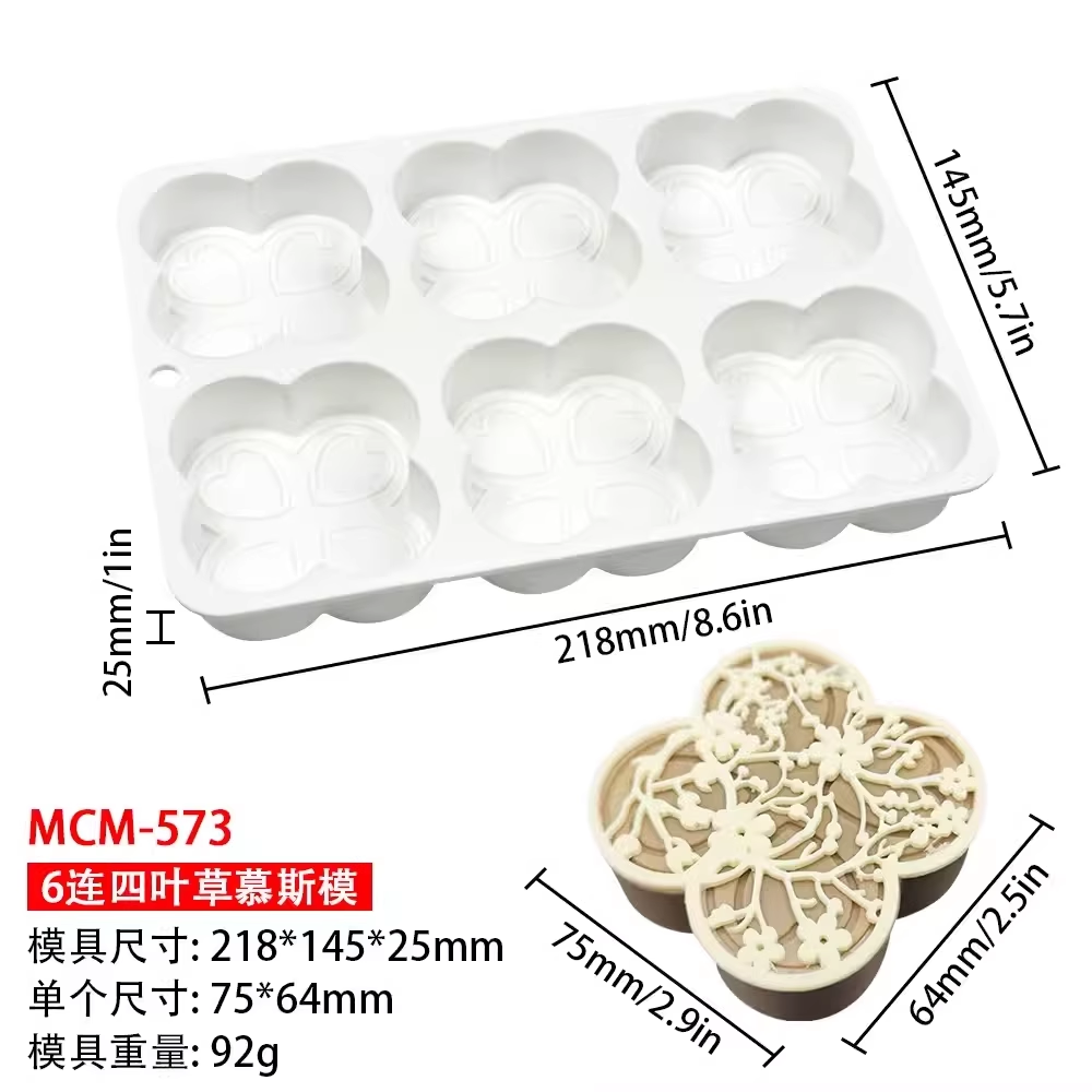 (特)中式3寸窗花冰糖慕斯蛋糕硅胶模新国风四叶草立体艾素糖甜品模具