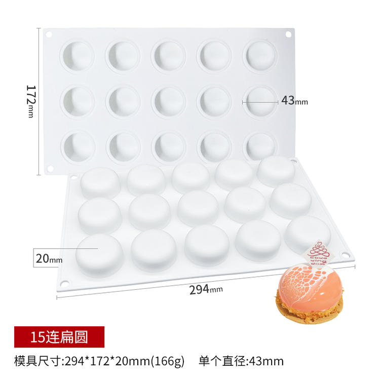(特)8连15连扁圆型圆形法式西点慕斯硅胶模磨具意大利烘焙蛋糕冰淇淋