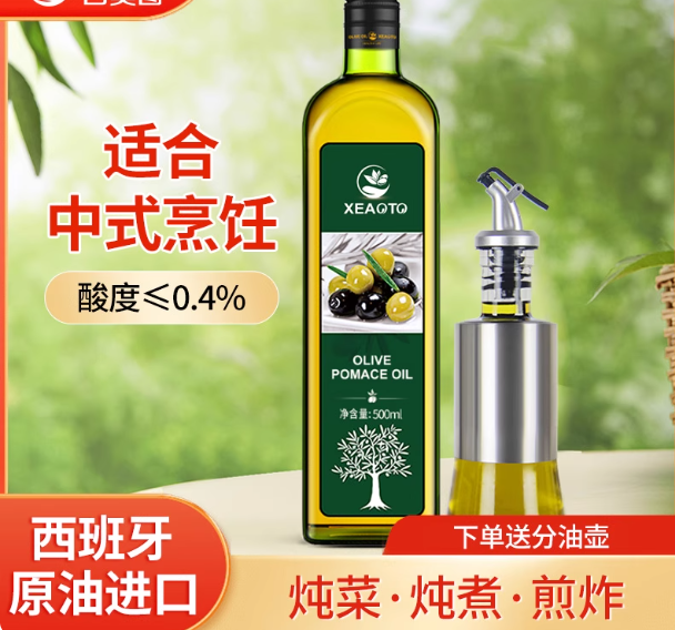 (特)食用油西班牙进口取自油橄榄500ml瓶装低反式脂 肪酸健身官方正品