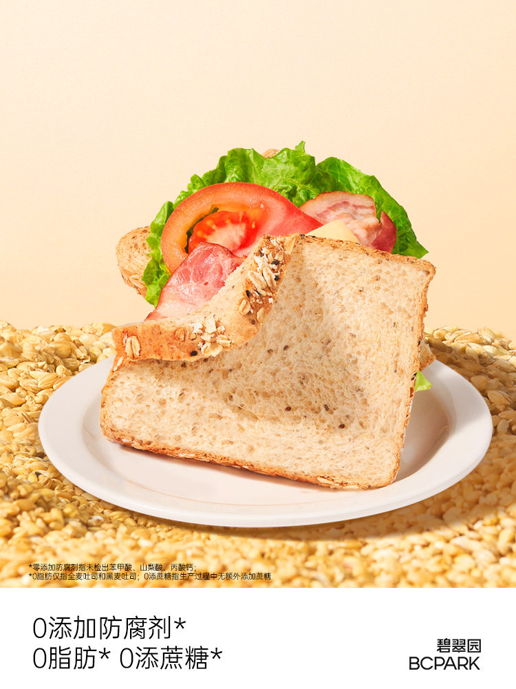 (特)碧翠园全麦面包0脂肪无添蔗糖荞麦粗粮减食品营养早餐整箱吐司片