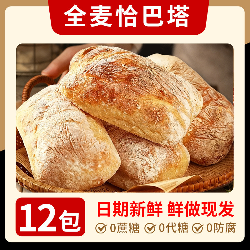 (特)全麦恰巴塔面包无添加0早餐速食肥健身代餐饱腹整箱健康手作发酵