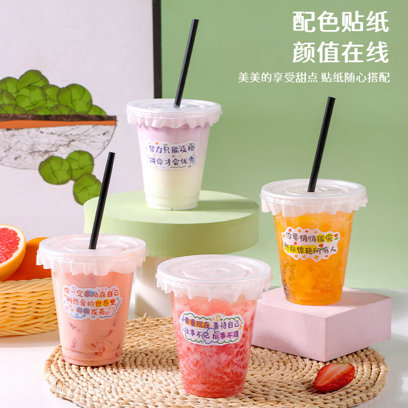 (特)拜杰奶茶杯一次性带盖饮品杯咖啡杯饮料杯350ML*100套【配贴纸+吸管】