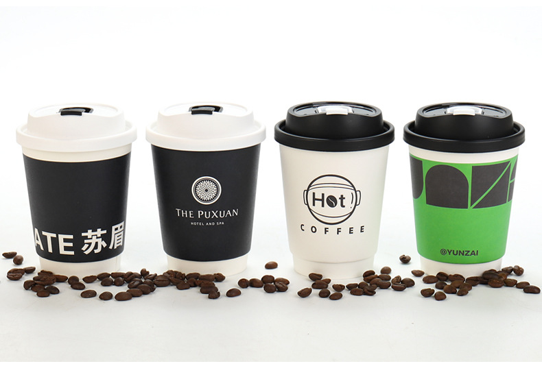(特)一次性咖啡奶茶双层隔热中空外卖热饮打包防漏盖纸杯