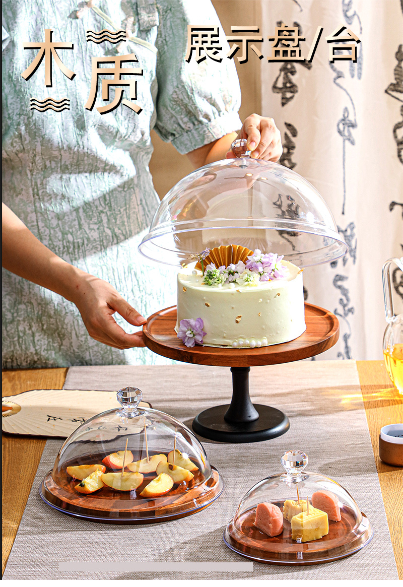 (特)甜品面包点心展示盘零食蛋糕托盘带罩盖水果小吃糕点摆放盘试吃盘
