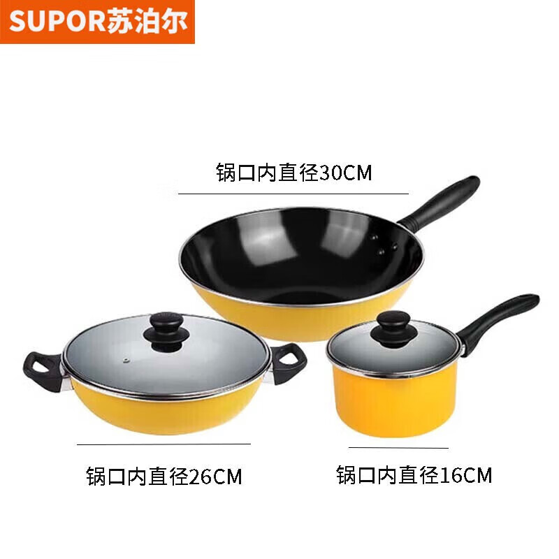 苏泊尔温馨之家三件套30CM炒锅26CM汤锅16CM煎锅燃气专用锅具套装T1360T
