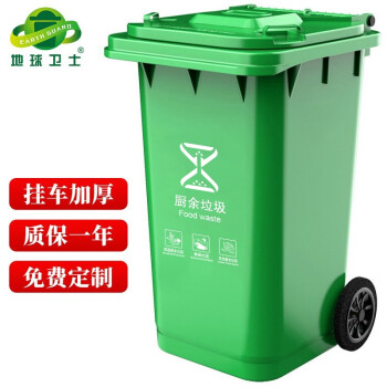 (特)地球卫士户外车载垃圾桶240L商用加厚新国标上海环卫垃圾桶 工业小区物业饭店酒店240升挂车款大垃圾桶绿色
