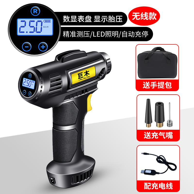 (特)巨木 无线充气泵车载汽车打气泵轮胎打气筒电动加气泵车用小轿车便携式随车可测胎压带胎压监测全自动冲气泵 无线充气泵【USB充电】智能数显 自动充停+收纳包
