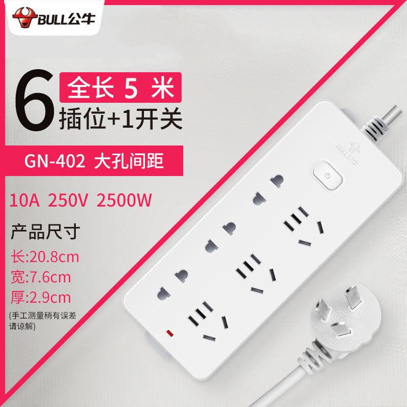 (特)公牛插座带线插排插座板插板长线拖接线多功能多孔家用宿舍转换器