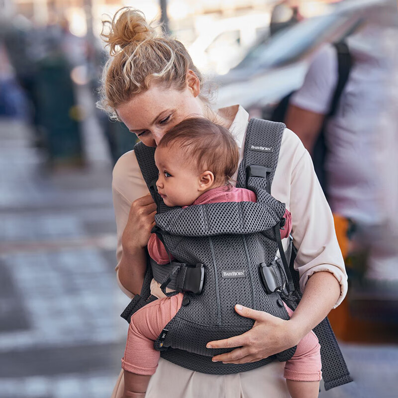 babybjorn瑞典进口婴儿背带宝宝简易抱娃神器解放双手One air烟灰色网眼