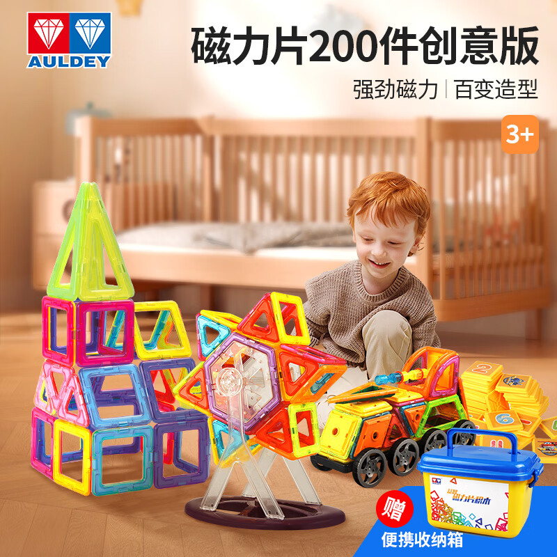 (特)奥迪双钻(AULDEY)磁力片200件套创意版儿童玩具3-6岁磁力积木玩具生日礼物