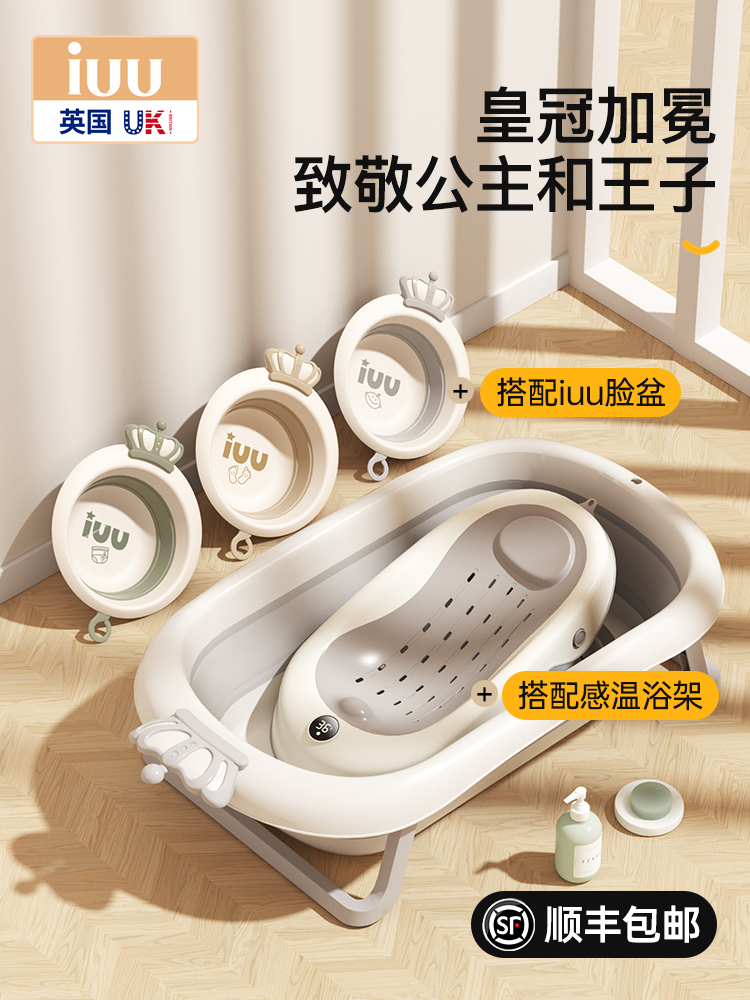 (特)IUU婴儿洗澡盆宝宝浴盆幼儿坐躺折叠大号浴桶家用新生儿童用品