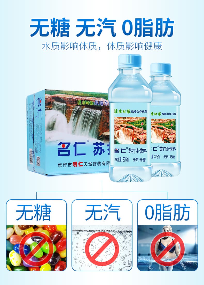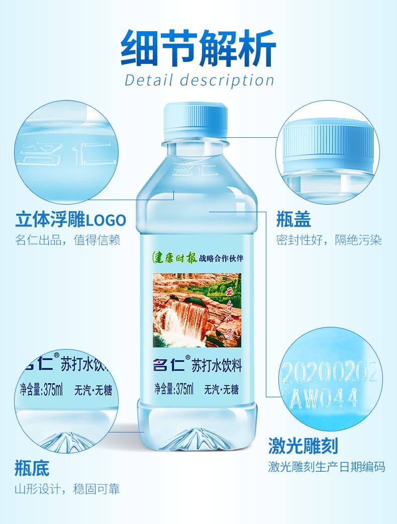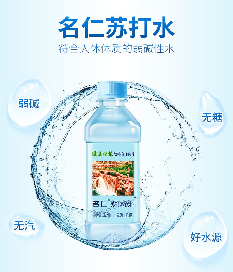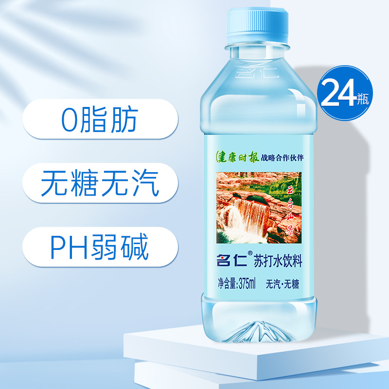 (特)名仁 苏打水饮料 无糖无汽弱碱性水 375ml*24瓶 整箱装