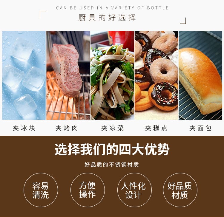 加厚不锈钢冰夹 方糖块食品夹子多功能油炸面包酒吧冰块夹烤肉夹