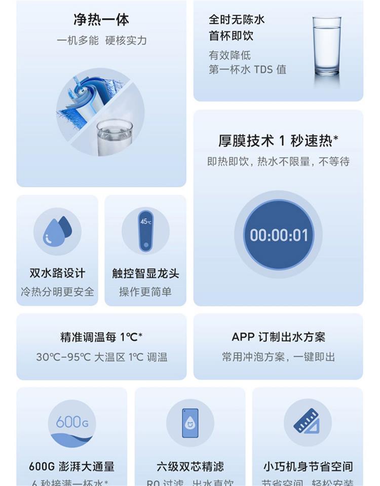 (特)小米即热净水器Q600G家用净水机RO反渗透龙头过滤器速热直饮水机