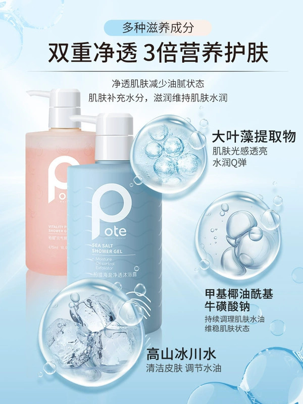 (特)pote柏缇沐浴露乳海盐除螨持久留香72小时香体女保湿滋润洗护套装