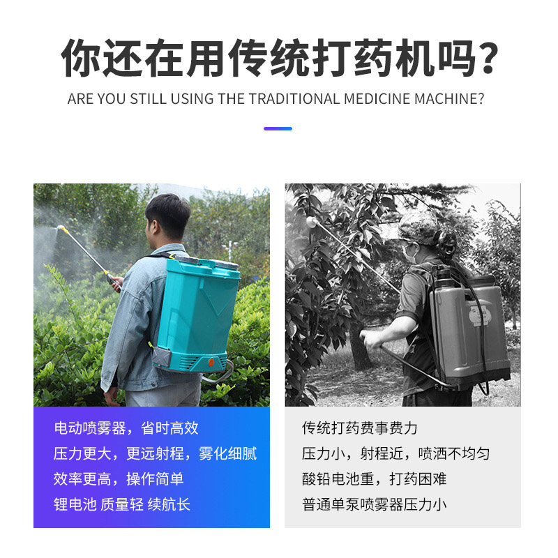 背负式锂电智能电动喷雾器农用充电消毒打药桶消毒喷壶电动打药机