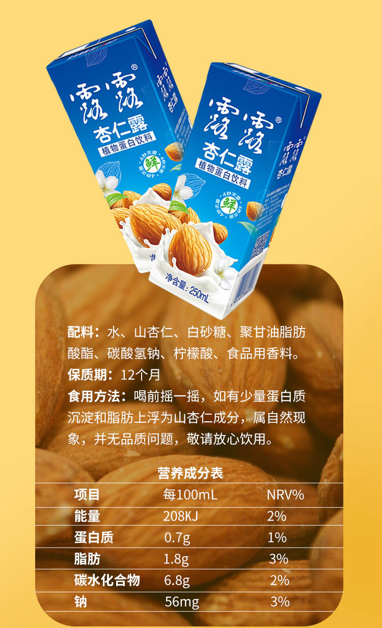 (特)露露杏仁露 经典原味250ml*12盒 轻享便携利乐包整箱 植物蛋白饮料