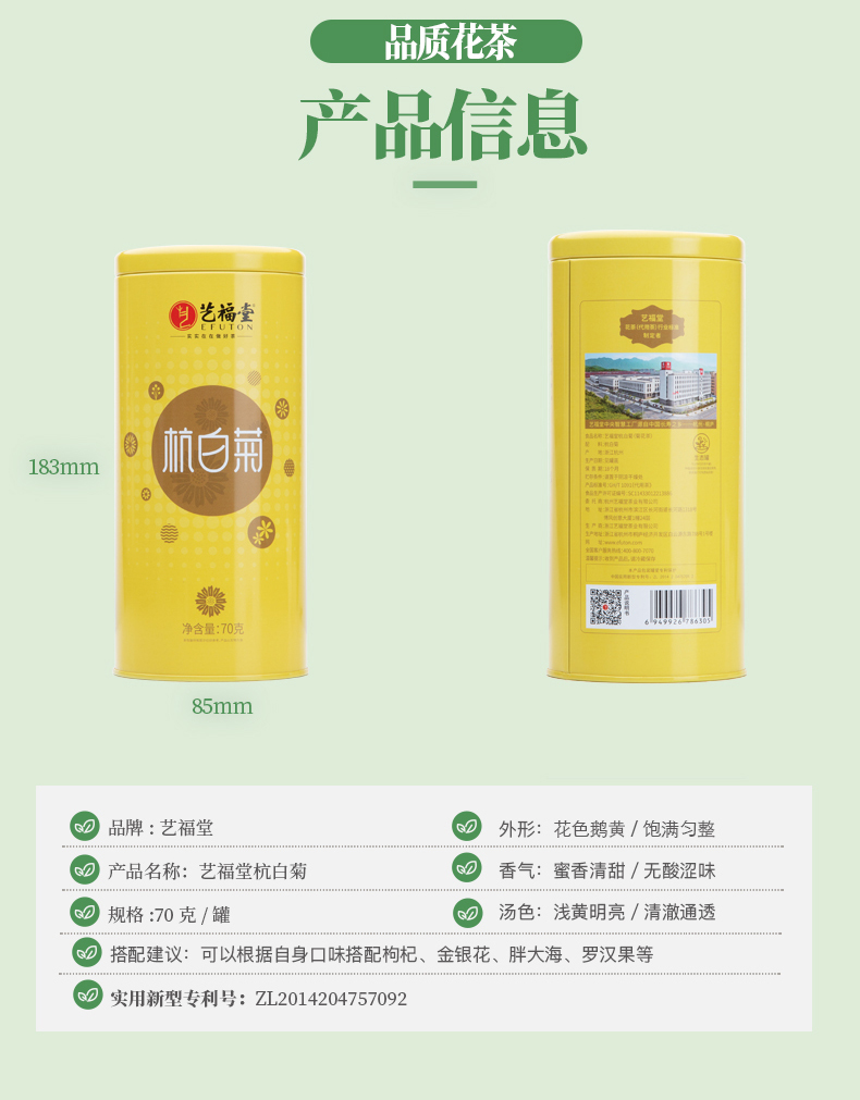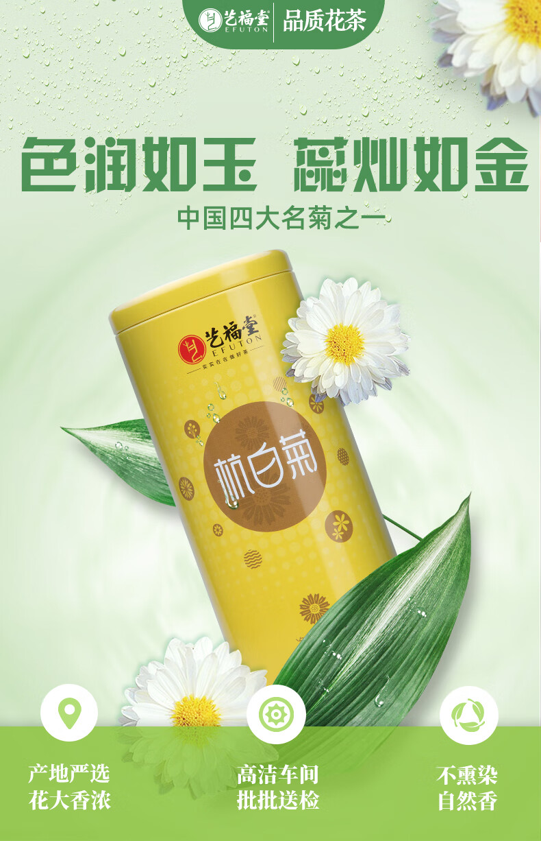 (特)艺福堂茶叶 花草茶 菊花茶杭白菊70g 泡水喝的养生茶凉茶送礼