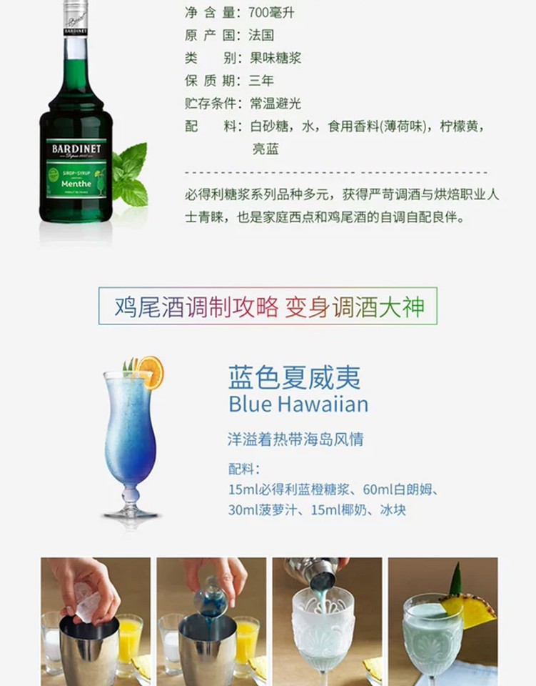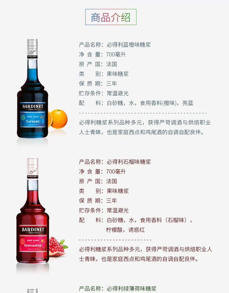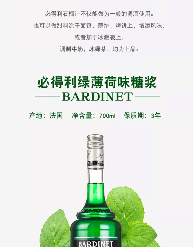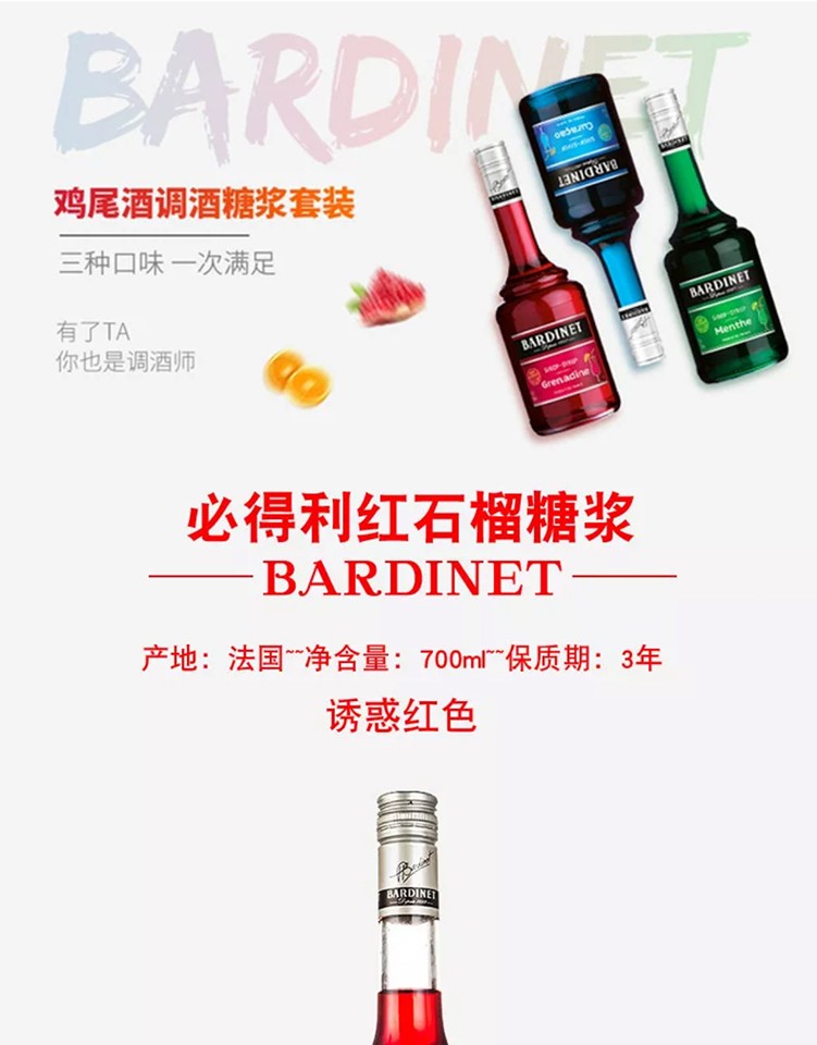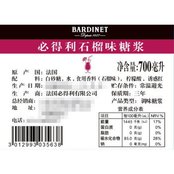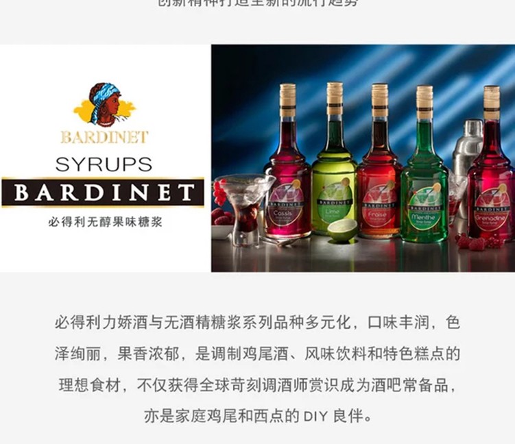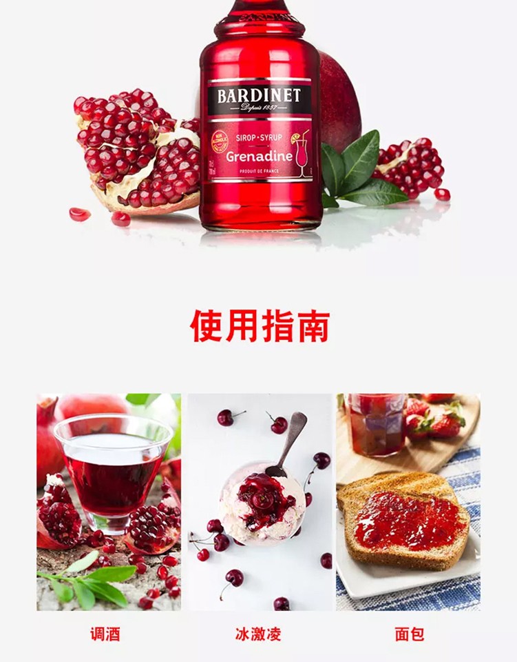 (特)必得利(Bardinet) 无酒精糖浆调酒 烘焙基酒 力娇酒无酒精糖浆 700ml 石榴味糖浆