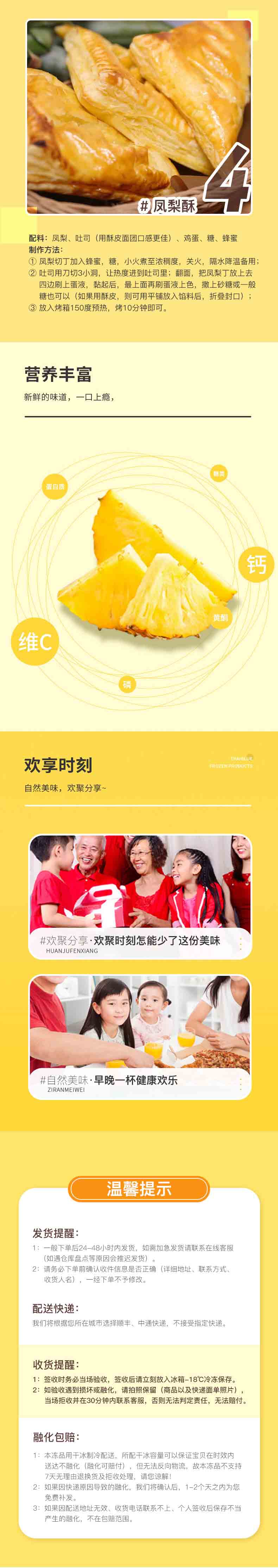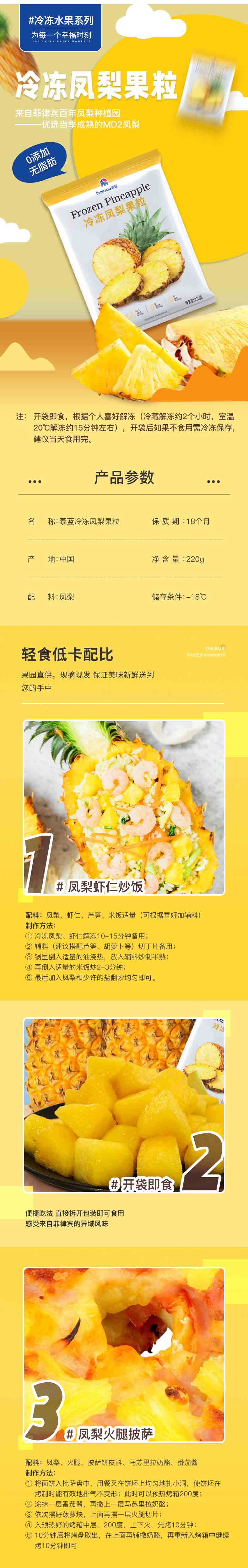 泰蓝菲律宾冷冻凤梨菠萝粒220g原装进口树熟新鲜水果急速冷冻