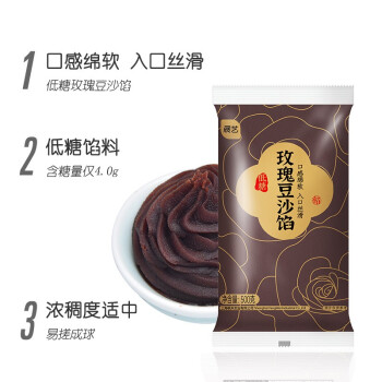 (特)展艺 低糖玫瑰豆沙馅500g 广式冰皮月饼蛋黄酥低糖月饼馅少糖减糖月饼馅料烘焙原料