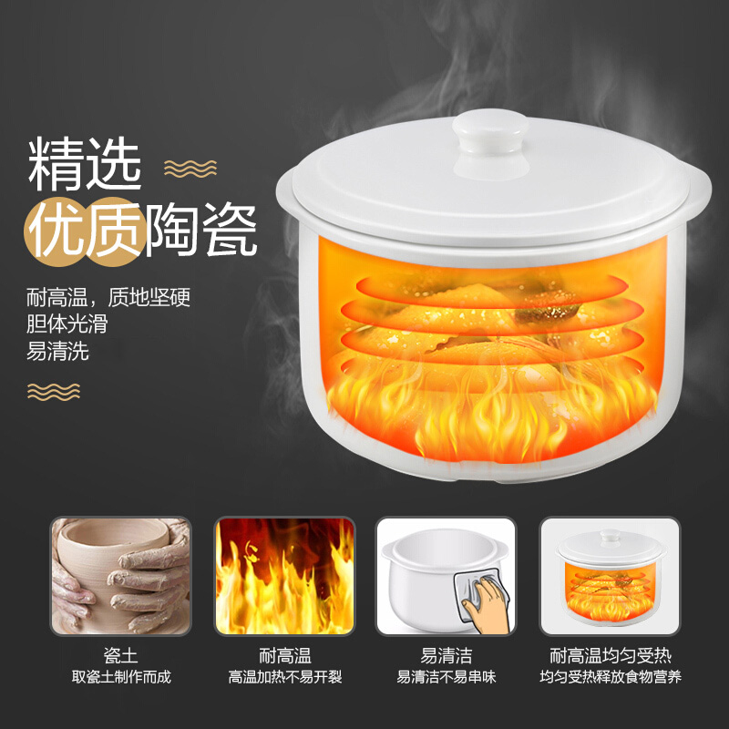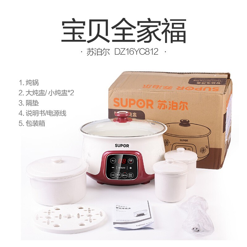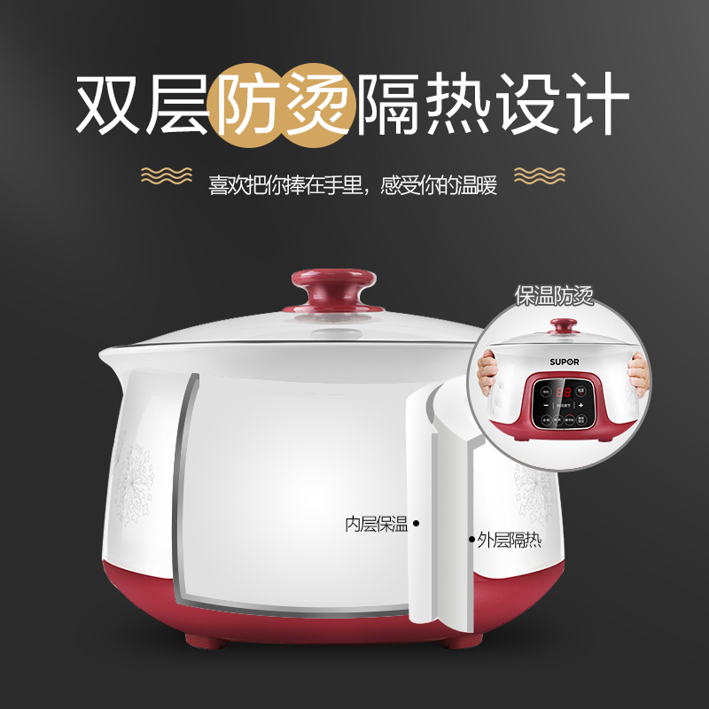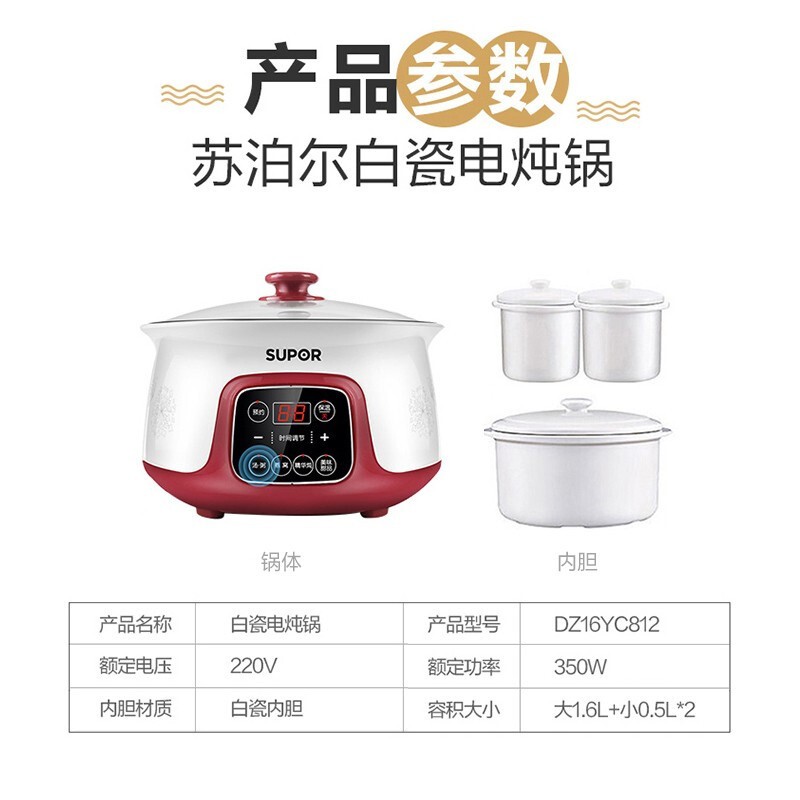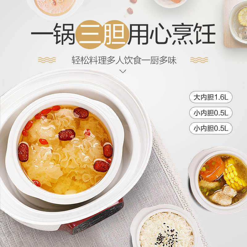 (特)苏泊尔(SUPOR)电炖锅 电炖盅 煲汤锅 炖汤锅 隔水炖 燕窝炖盅 陶瓷三胆 煮粥锅 DZ16YC812-35