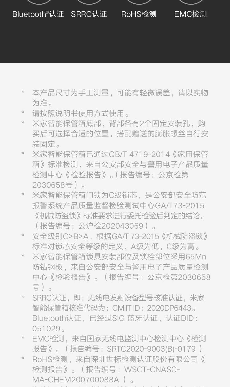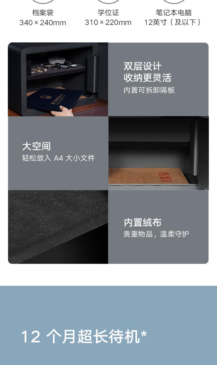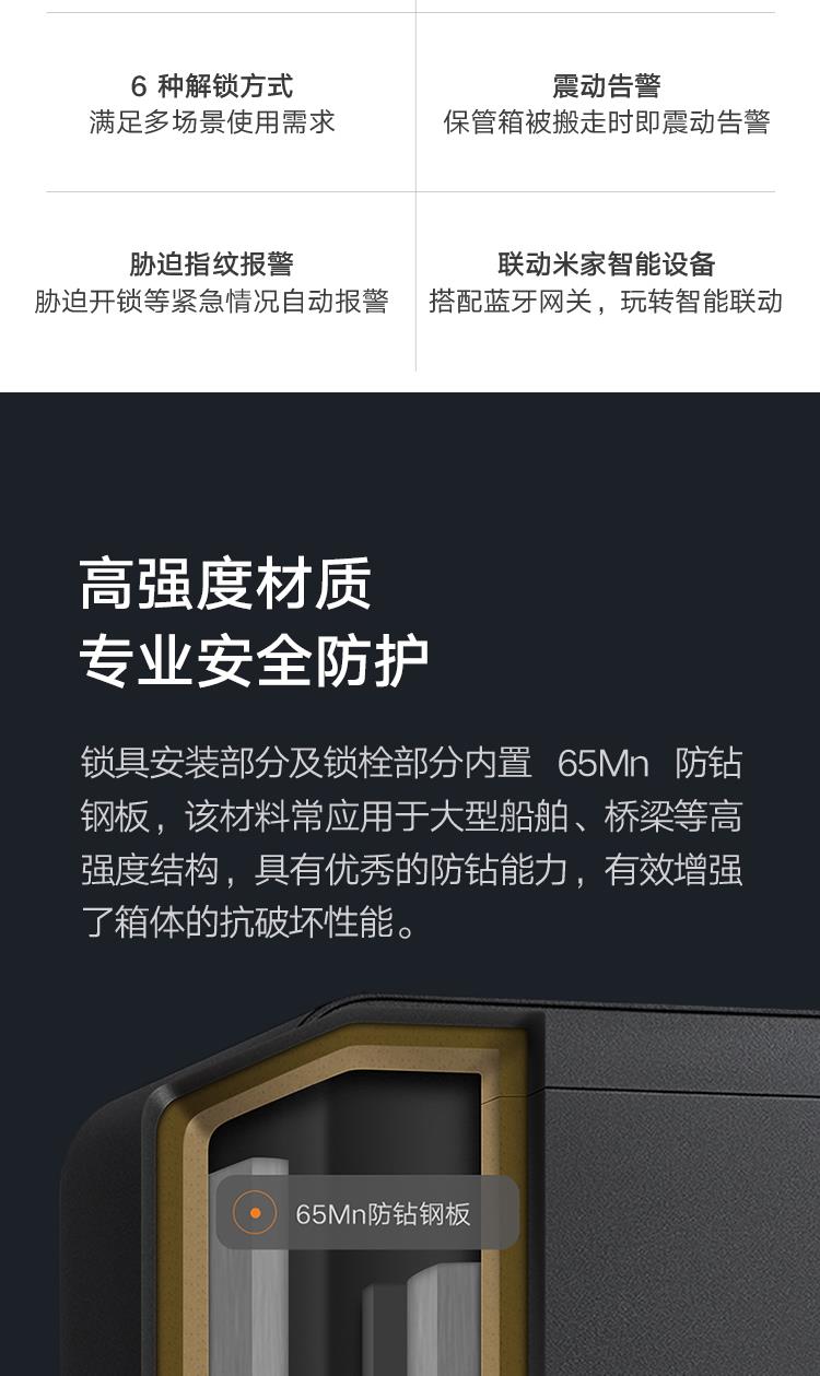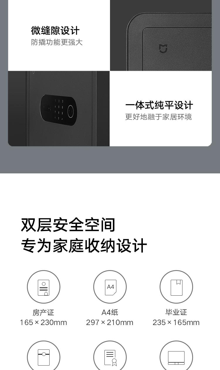 (特)小米米家智能保管箱保险柜 高30CM 指纹 密码6种解锁方式 办公家用保管柜保密箱