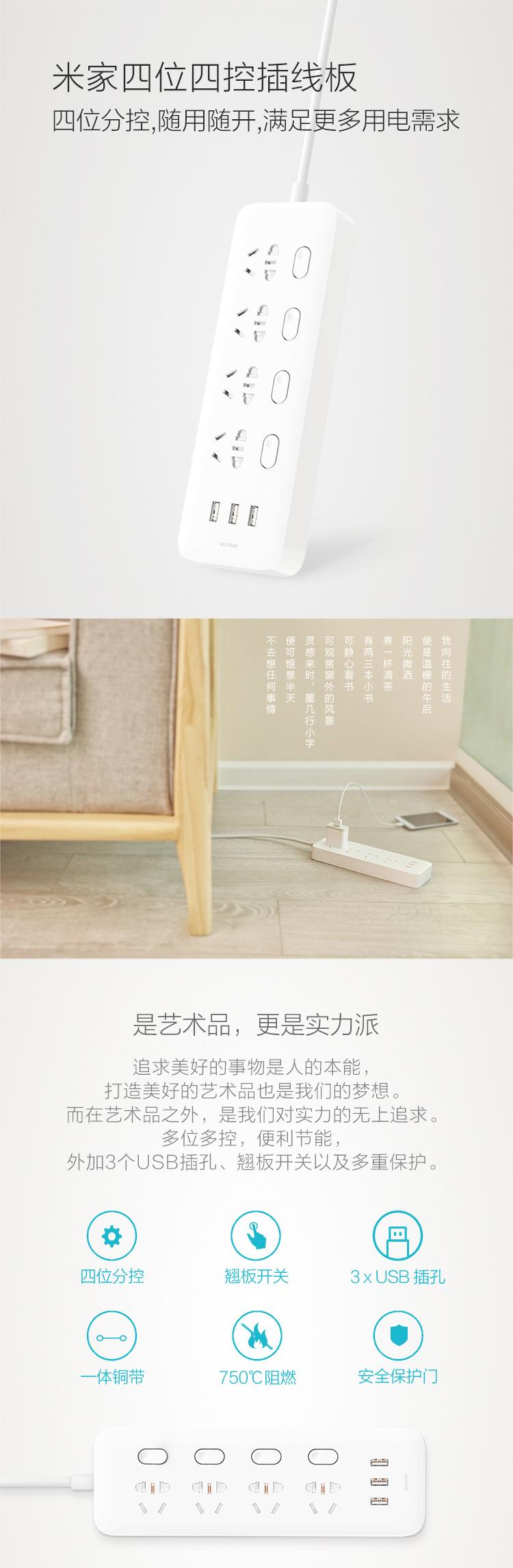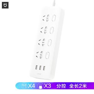 (特)小米(MI)米家四位四控插线板(含3口USB 2A快充)多功能插排接线板 米家四位四控插线板