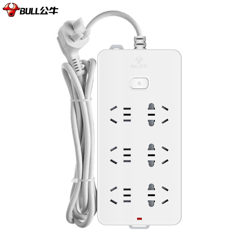 (特)公牛(BULL) 插座/带儿童保护门 新国标/插线板/插排/排插 GN-109K 6位总控开关全长5米